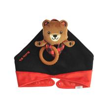 The removable and wearable plush sensory toy holds baby's pacifier (any with handle) or teether. It provides baby convenient access to their pacifier or teether while having fun interacting with their soft, cuddly buddy. The soother/teether holding buddy can be removed and used separately from bib (affixed to stroller, car seat strap or wrist etc.). The soft fabric bib with water resistant layer contains drool and keeps clothes dry and is reversible. Suggested age range is 3-12 months.