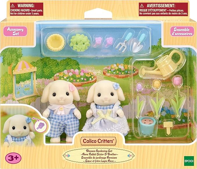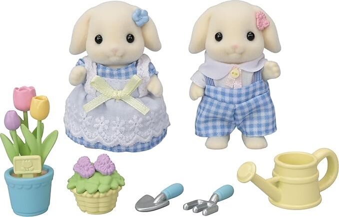 The Blossom Gardening Set -Flora Rabbit Sister & Brother- contains the Flora Rabbit girl and boy and a variety of gardening accessories.