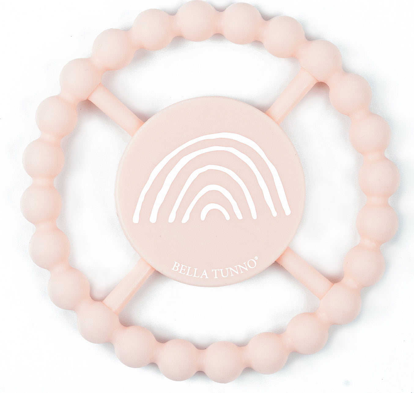 Our teething rings were designed with purpose! The rounded shape of the Happy Teether provides easy grip from any angle. The silicone material and beaded design give the right amount of resistance to sore gums and newly developed teeth.