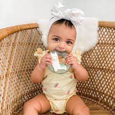 Our water-filled teether is textured on both sides to help soothe sore gums, and can be chilled in the refrigerator for extra relief. Its open shape is easy for baby to hold and its trendy Design makes it even easier on the eyes!