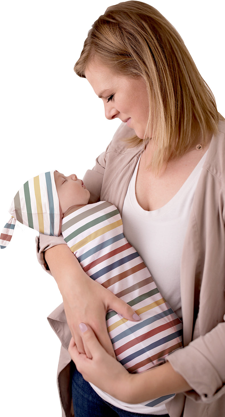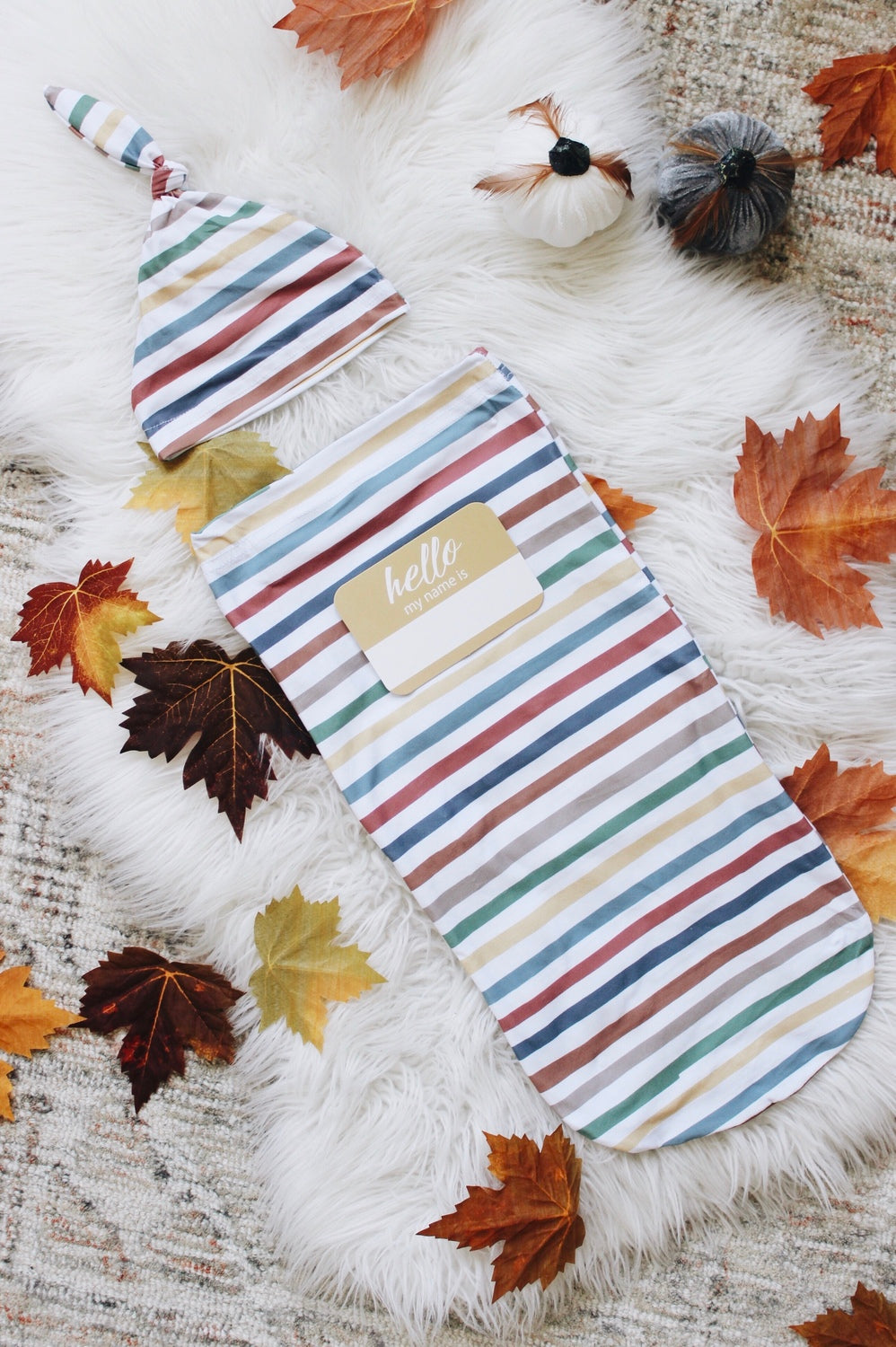 rap your little one up for adorable photos in this Itzy Ritzy cocoon striped wrap and hat set.