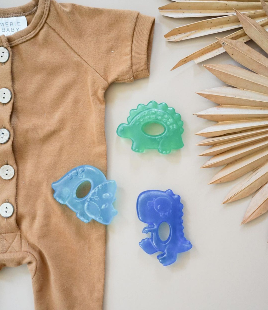 3-pack of water-filled teethers are textured on both sides to help soothe sore gums, and they can be chilled in the refrigerator for extra relief. Their open shape is easy for baby to hold and their trendy designs make them even easier on the eyes!