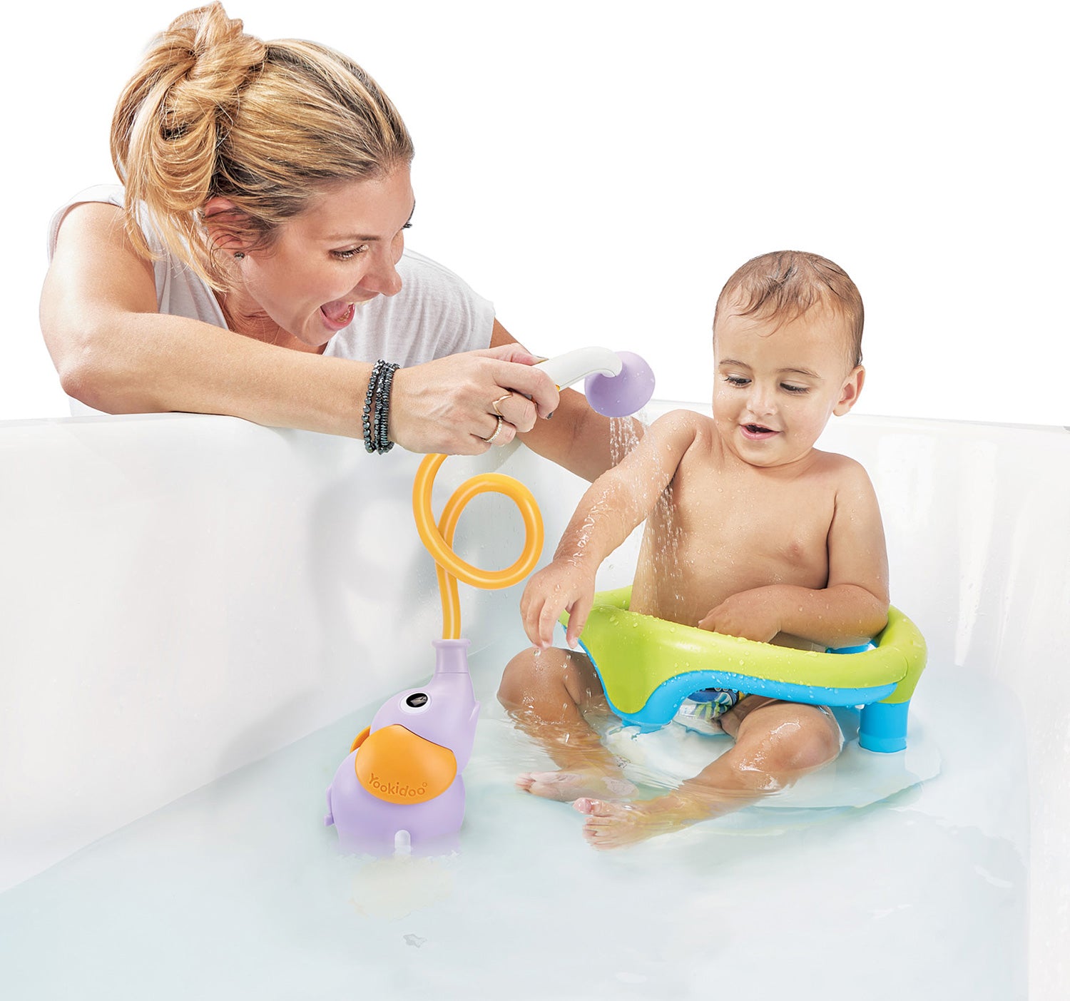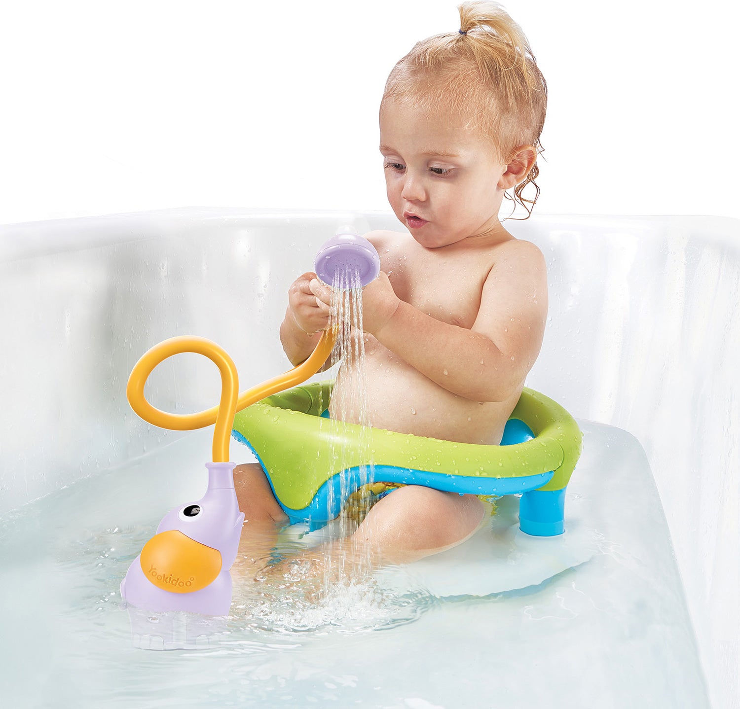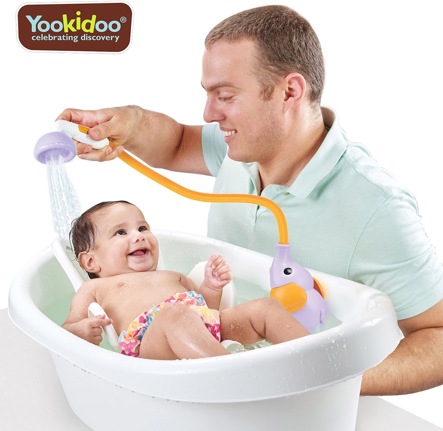 Designed for safe, gentle and easy maneuvering. Enables parent to secure a new born with one hand while the other hand is free to complete a full shower for baby.