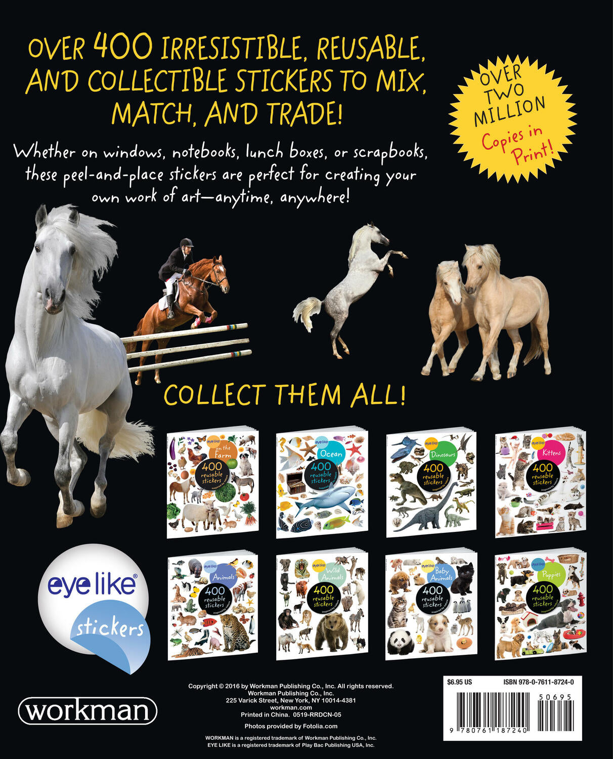 Guaranteed to bring unbridled joy to every kid and crafter who loves horses, Eyelike Stickers: Horses is the newest addition to the bestselling sticker book series that has over a million copies in print. And no wonder: Its over 400 equestrian-themed, full-color photographic and illustrated stickers are vibrant, beautifully detailed and lifelike—and durable, designed to be stuck on, peeled off, and stuck on again without tearing or losing adhesive.