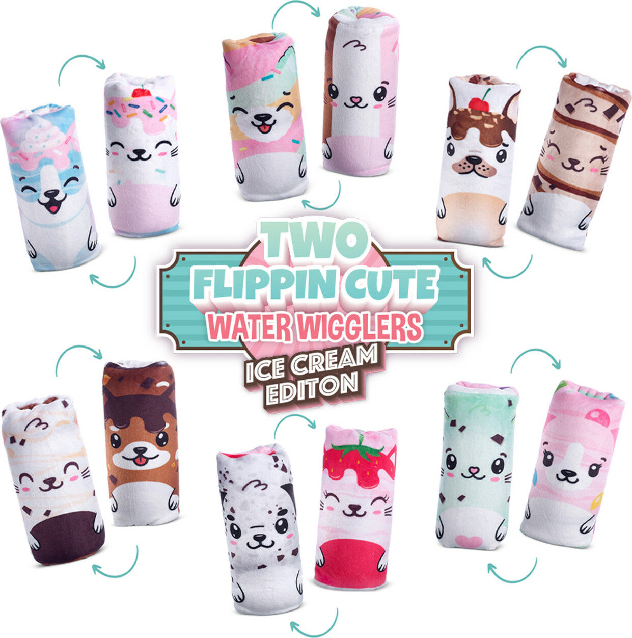 our favorite fidget water wiggler toy, now wrapped in a 2 sided plush! Now introducing the Ice Cream Collection! Satisfy your sweet tooth with our newest addition to the Water Wiggler family. Squeeze them, pinch them and flip them inside-out to reveal a second character!