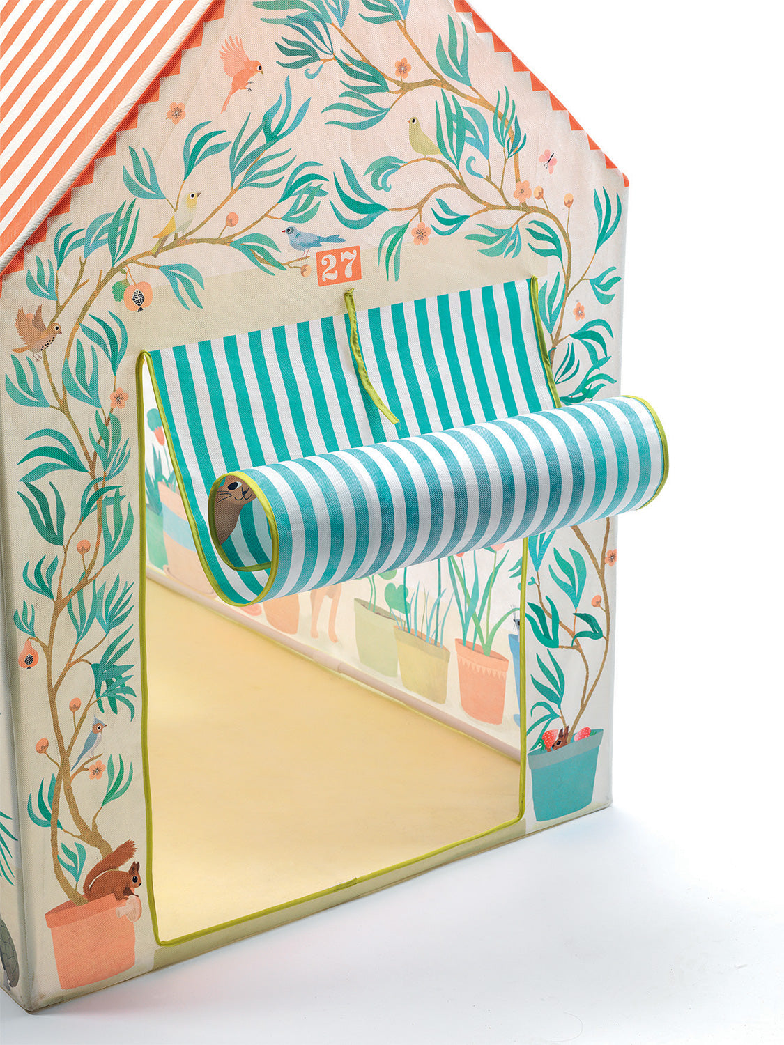 With stunning artwork and a sturdy build, this playhouse is the perfect backdrop for hours of imagination and adventure. Have tea parties, pretend to garden, read favorite books or tell stories - all in your own magical space that pops up fast and folds flat for easy storage. At 40 in. long, 29 in. wide, and 41 in. high, it's big enough for friends, too. Perfect for indoor or outdoor play.