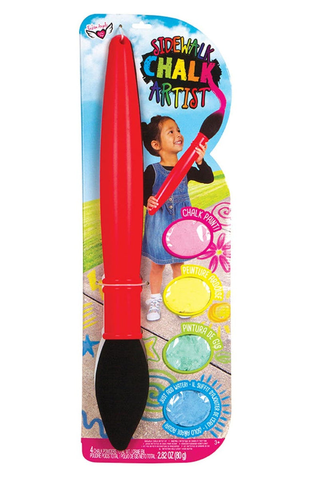 - Set includes 4 colors of powdered chalk, 24in foam tipped paint brush