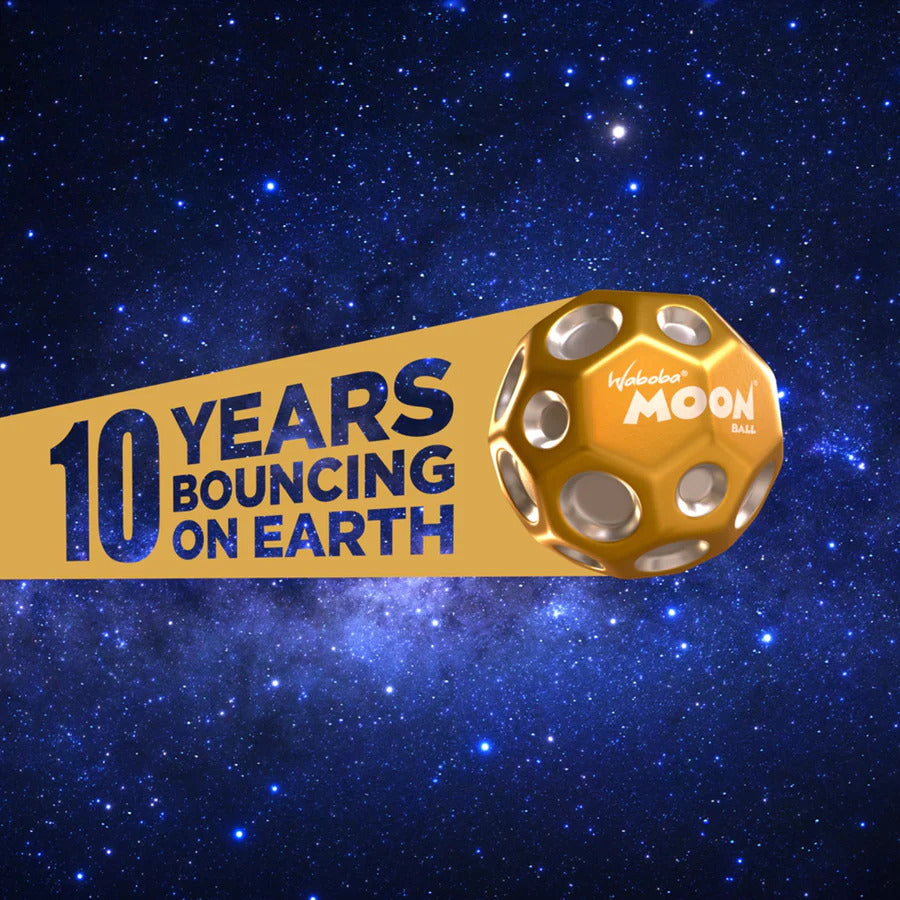 The Moon Ball is the highest bouncy ball to hit earth! That's one small step for Waboba, one giant bounce for moonkind. The Moon Ball's gravity-defying bounce is out of this world. It’s extremely addictive to bounce everywhere there's a hard surface.