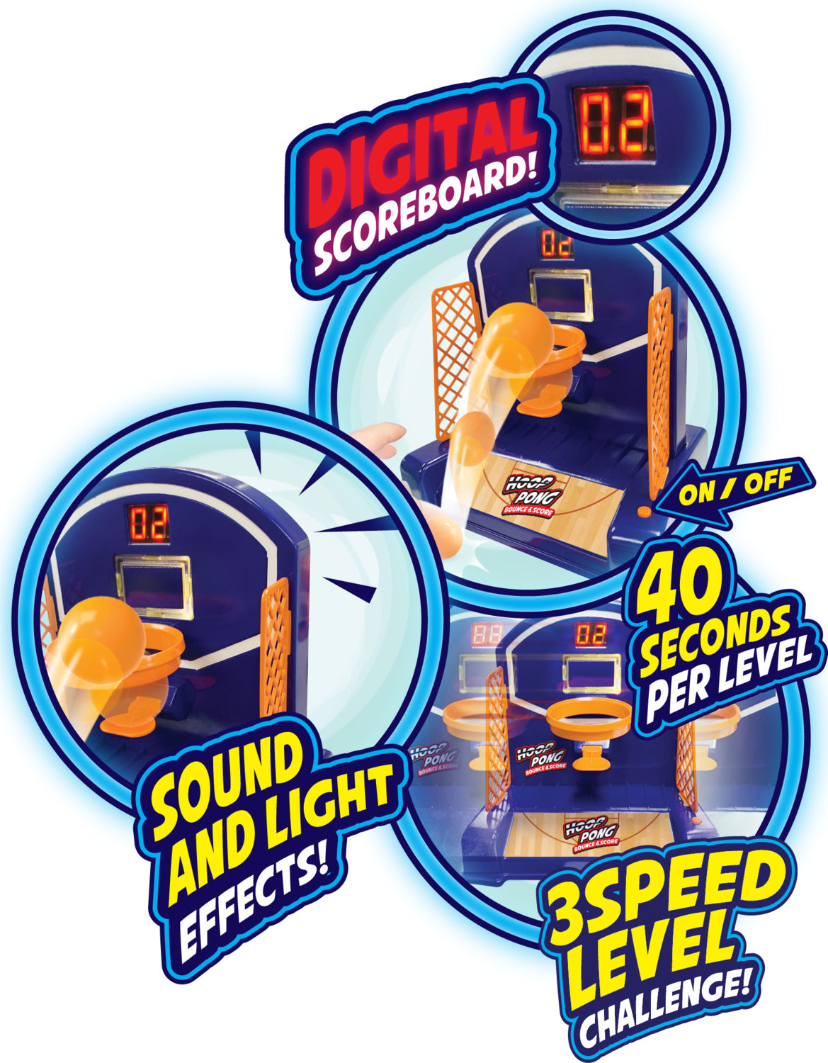 With an electronic score counter and cheering sound effects, this game is a ton of fun for kids and adults of all ages!