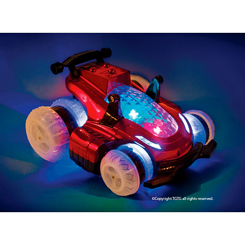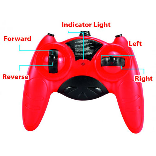 - Red RC stunt vehicle runs at 49 MHz