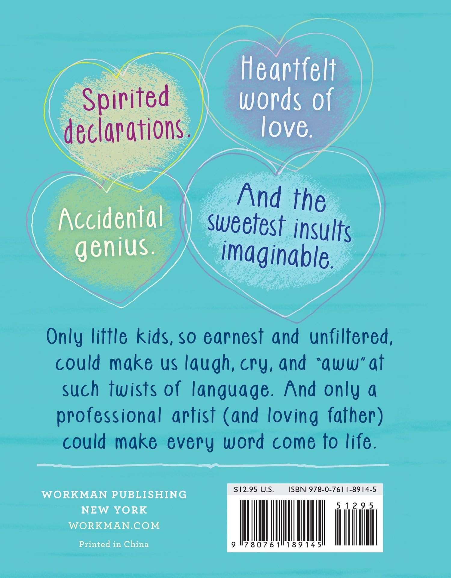 Every parent will recognize the spirited declarations of personality—“I’m training to be a wolf.” The endearing mangling of language—“Mommy, I don’t need your mouth to talk to me right now.” The creative mixing of metaphors—“I need a tissue to wipe my feelings.” Those precious, heartbreaking outbursts without guile or filters—“I only love you at the toy store.” Illustrated with sweetness and whimsy, each is a window into the irresistible innocence of childhood, even if the sentiment is “Dad, please wipe the bum of this beautiful princess.”