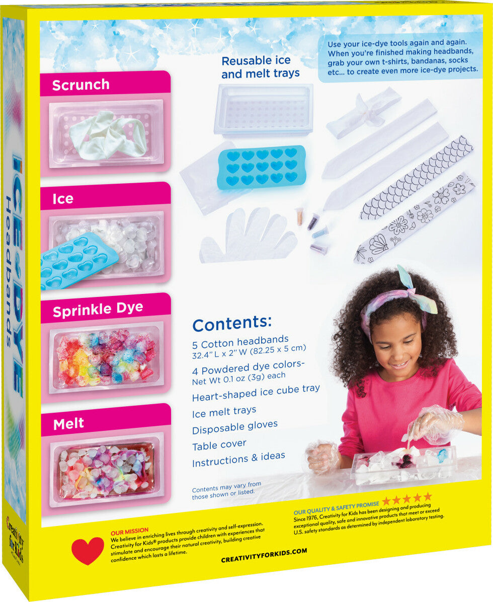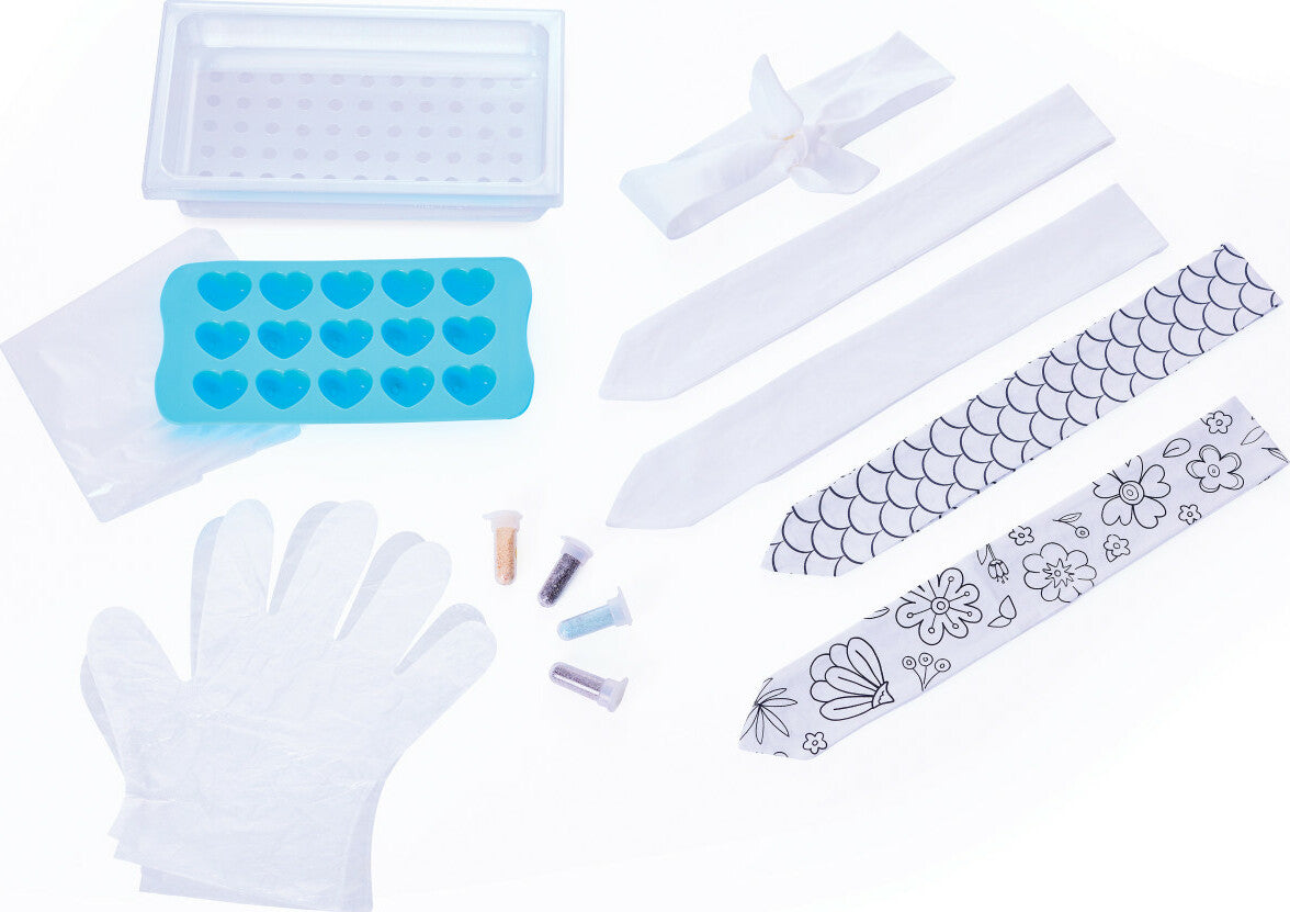 In addition to the 5 headbands, dye and reusable tools, we provide thoughtful extras like crafting gloves, a table cover and an ice cube tray with heart shapes.