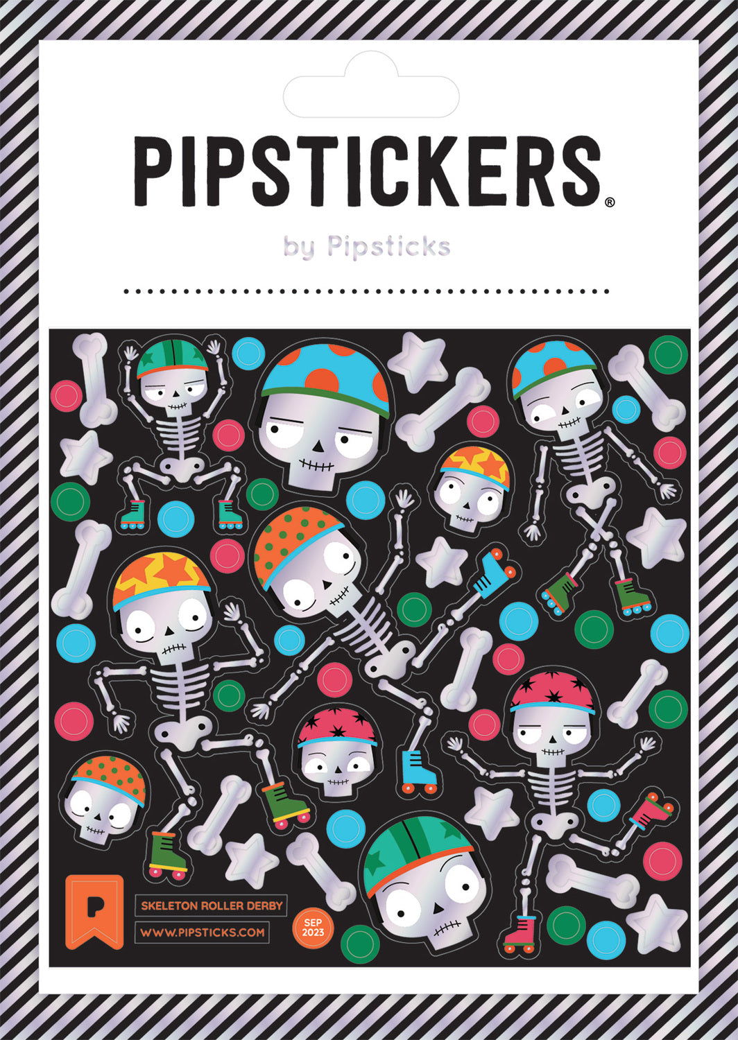 Includes one 4" x 4" sheet of Skeleton Roller Derby PipStickers and includes the Pipsticks manifesto.