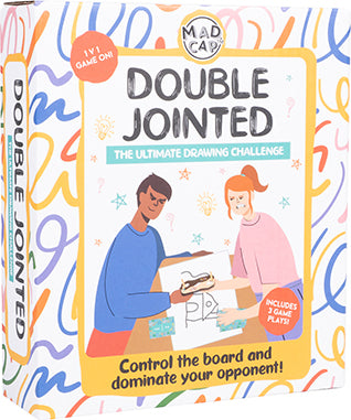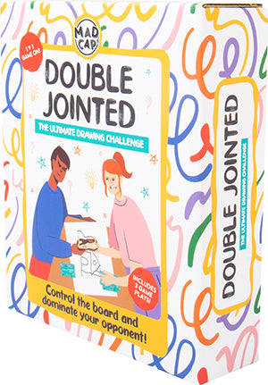 Double Jointed is played with a deck of cards that feature a wide range of drawing prompts, from simple shapes to more complex objects and scenes. Players can either go head-to-head in a competitive game or work together as a team to complete the drawing.