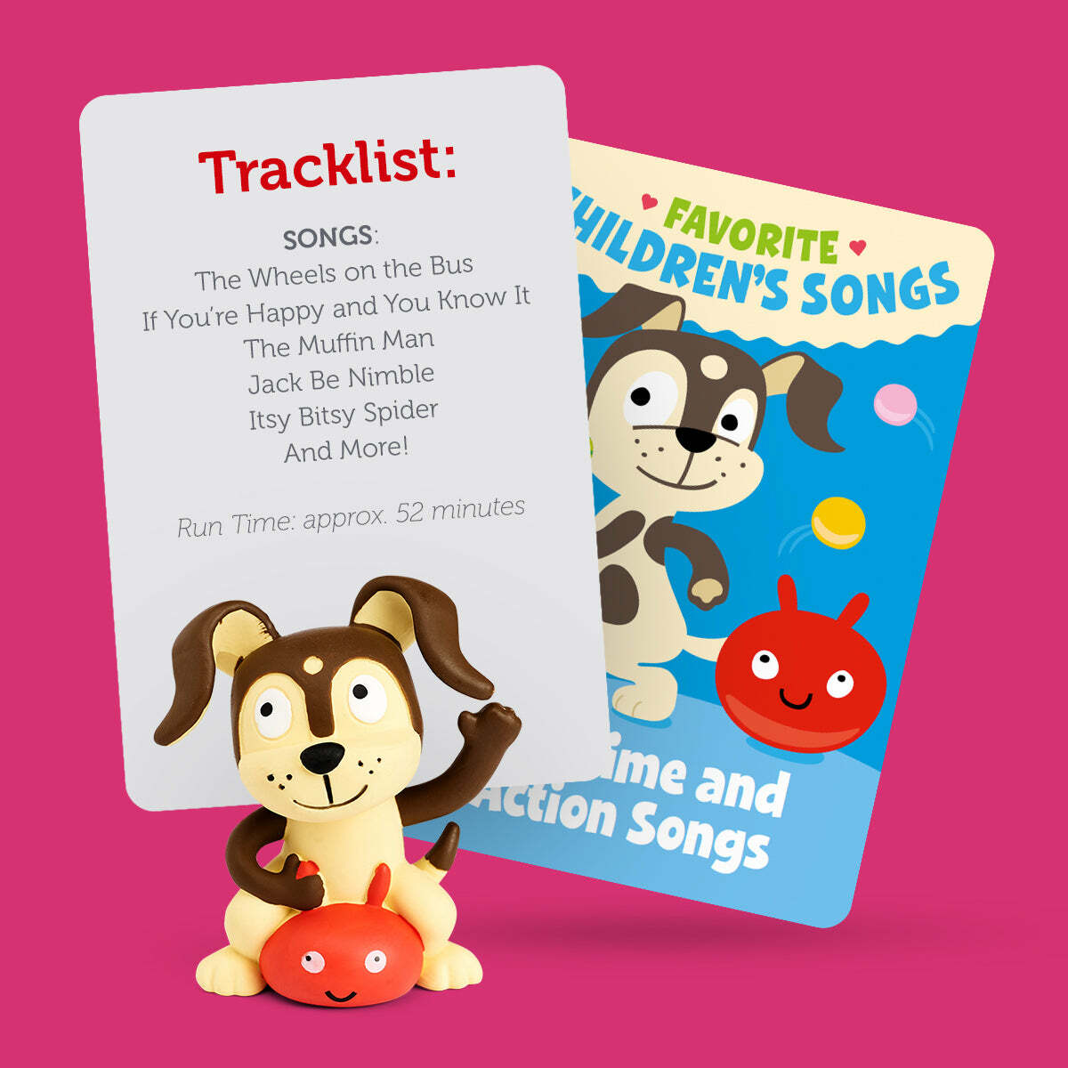 Theย included Favorite Children's Songs: Playtime Songs Tonieย features a select compilation of the most popular children's songs for playtime including Wheels on the Bus, If You're Happy and You Know It, Baby Shark and more! This set also includes a charging station to power your Toniebox battery (up to 7 hours of battery life) and an instruction manual.