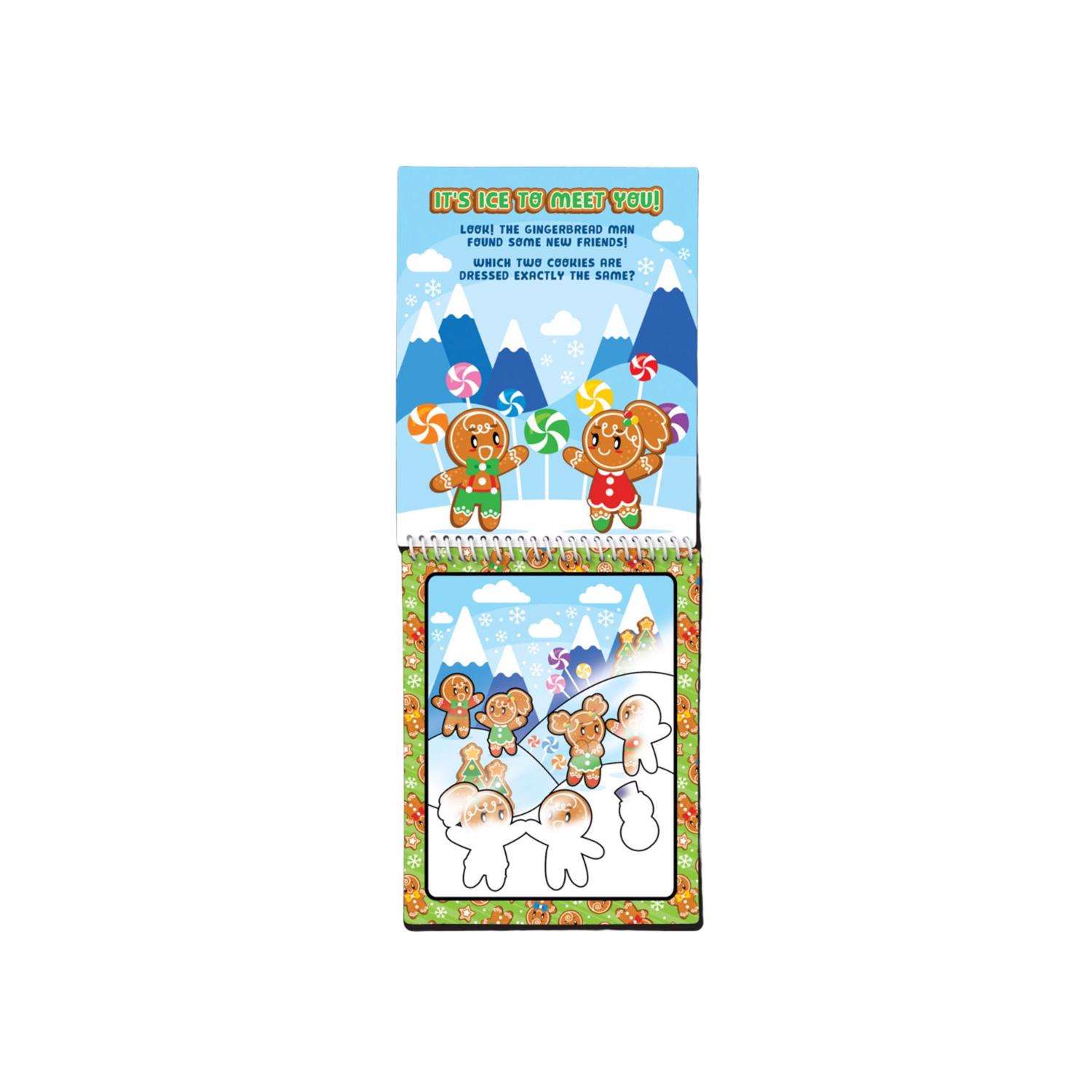 Bring festive creativity to life with Water Magic Holiday Gingerbread from Scentco! This mess-free, reusable coloring activity lets kids paint adorable gingerbread-themed holiday scenes using only water. Simply fill the included brush with water and watch the colors appear like magic—no markers, no mess, no cleanup.